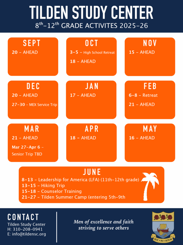 Tilden Study Center offers various programs for middle school and high school boys, university men, and professionals.